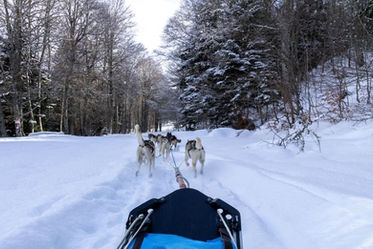 Montez dans le traîneau/kart et laissez-vous guider par le musher et ses chiens